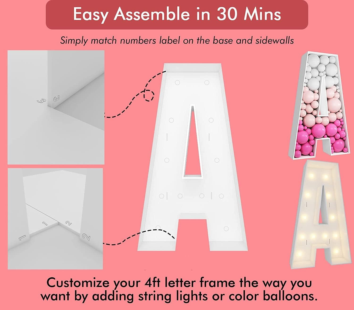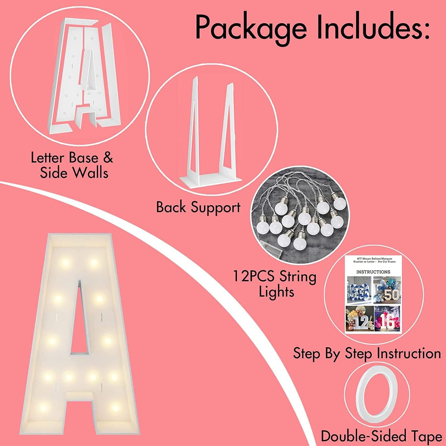 Marquee Light Up Letters, 4FT Marquee Letters A, Mosaic Letters for Balloons, Mosaic Balloon Frame, Giant Cardboard Letters for Birthday Engagement Wedding Party Decoration, Balloon Arch Kit