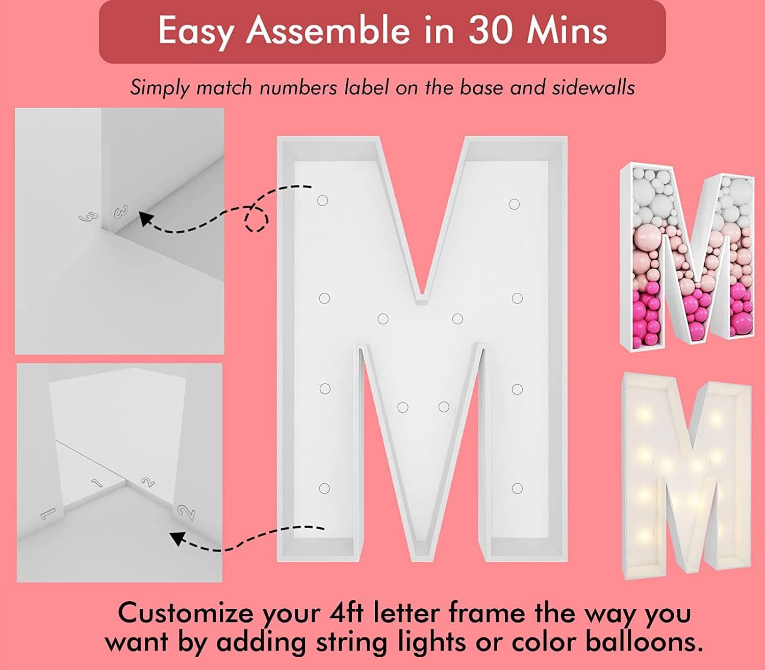 Marquee Light Up Letters, 4FT Marquee Letters M, Mosaic Letters for Balloons, Mosaic Balloon Frame, Giant Cardboard Letters for Birthday Engagement Wedding Party Decoration, Balloon Arch Kit