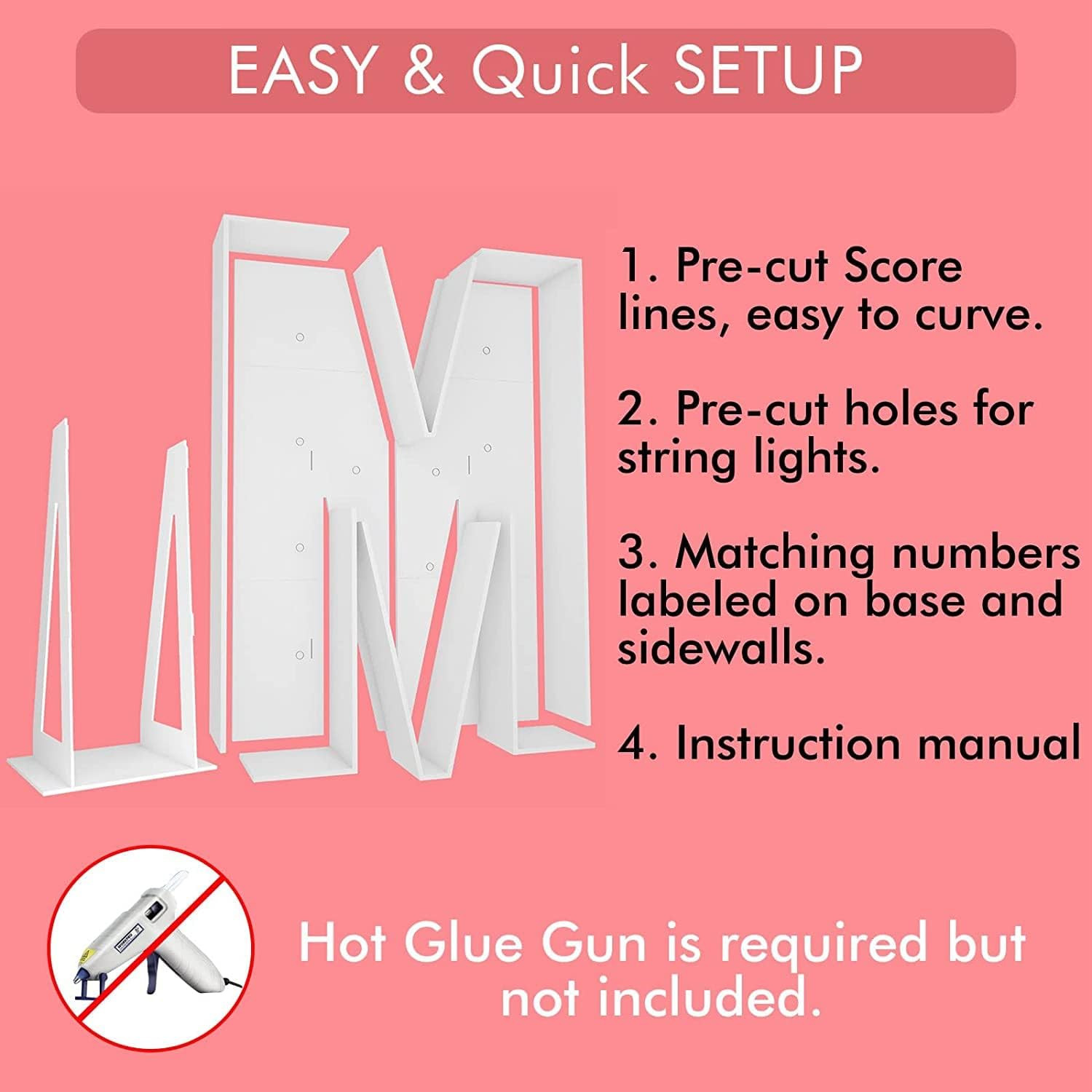 Our 4FT letters frame are pre-cut in perfect shape. We included match up number for each sidewall matching the letter base. Save your hassle from figure out yourself.
