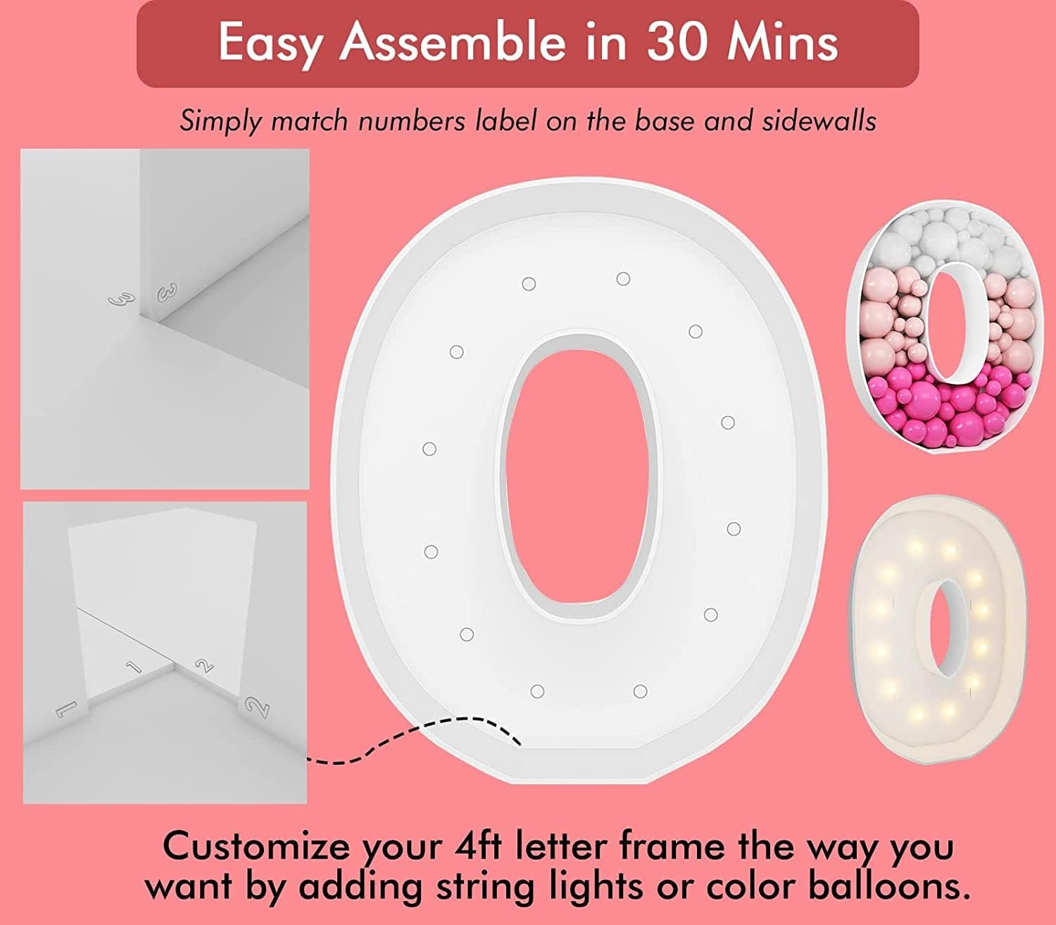 Marquee Light Up Letters, 4FT Marquee Letters O, Mosaic Letters for Balloons, Mosaic Balloon Frame, Giant Cardboard Letters for Birthday Engagement Wedding Party Decoration, Balloon Arch Kit