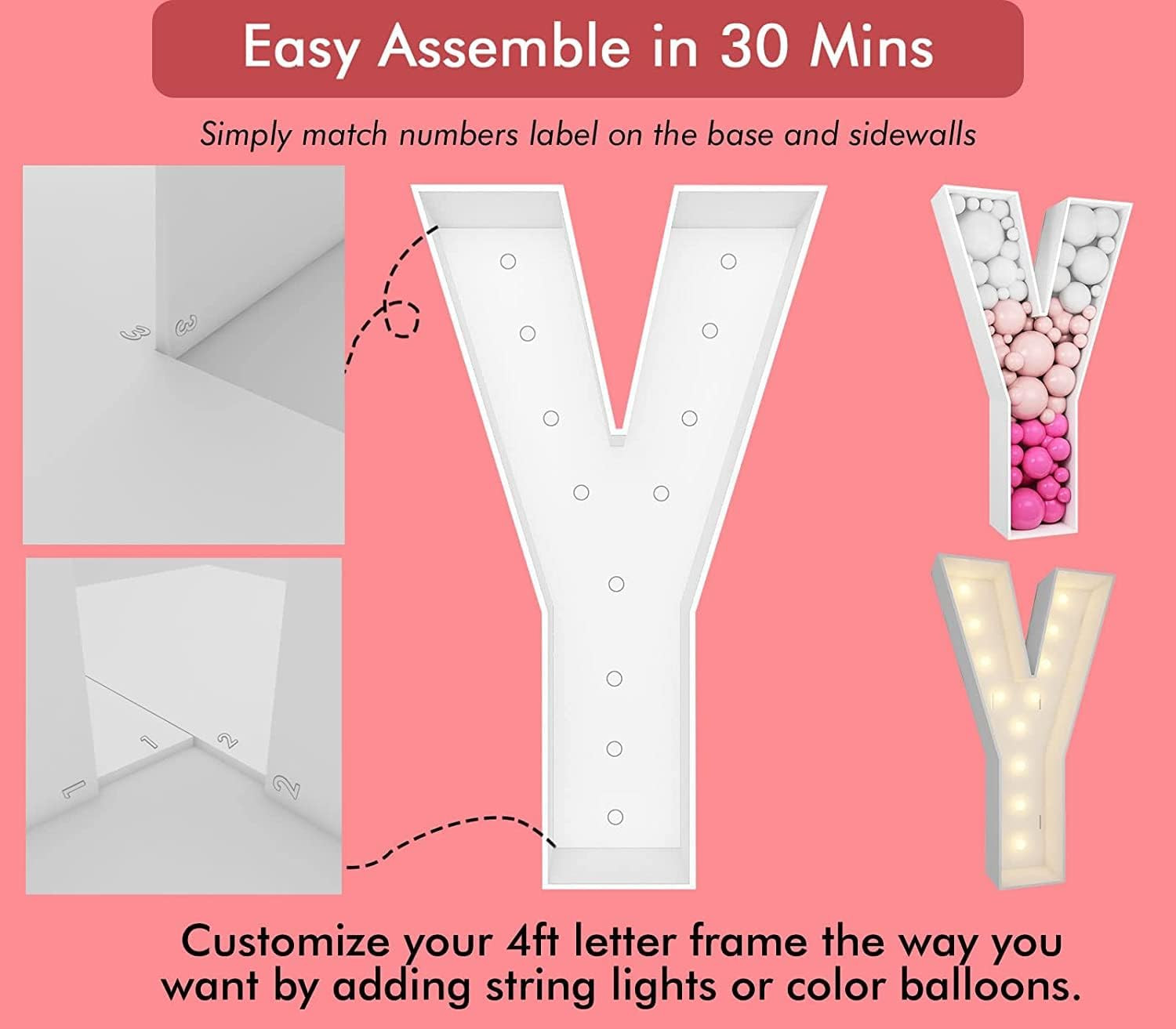 Marquee Light Up Letters, 4FT Marquee Letters Y, Mosaic Letters for Balloons, Mosaic Balloon Frame, Giant Cardboard Letters for Birthday Engagement Wedding Party Decoration, Balloon Arch Kit