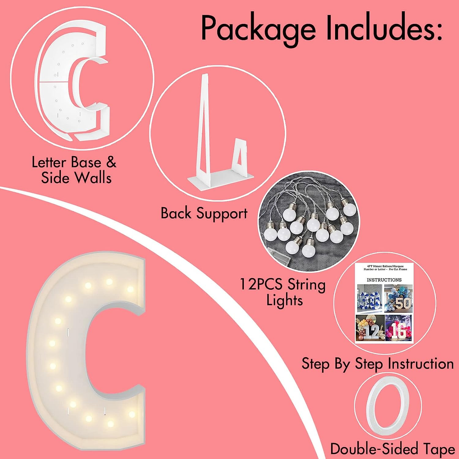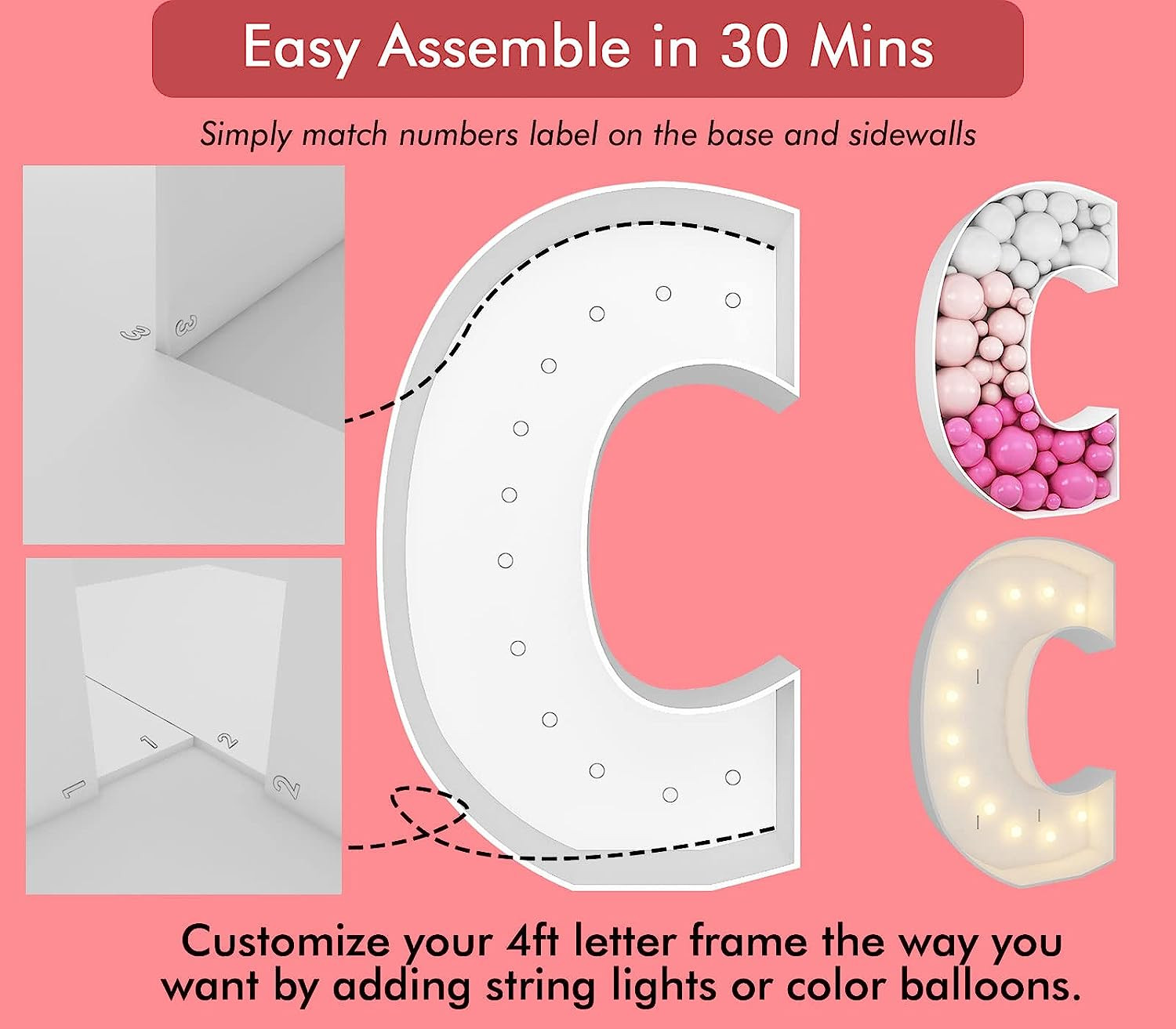 Marquee Light Up Letters, 4FT Marquee Letters C, Mosaic Letters for Balloons, Mosaic Balloon Frame, Giant Cardboard Letters for Birthday Engagement Wedding Party Decoration, Balloon Arch Kit