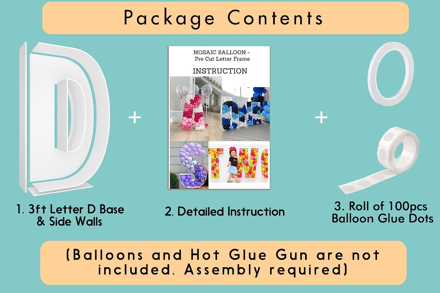 • Our balloon mosaic letter pre-kit comes with everything you need to build a 3D sculpture with a detailed instructions. Set up your giant 3ft tall balloon mosaic or marquee letters in just 15 minutes!