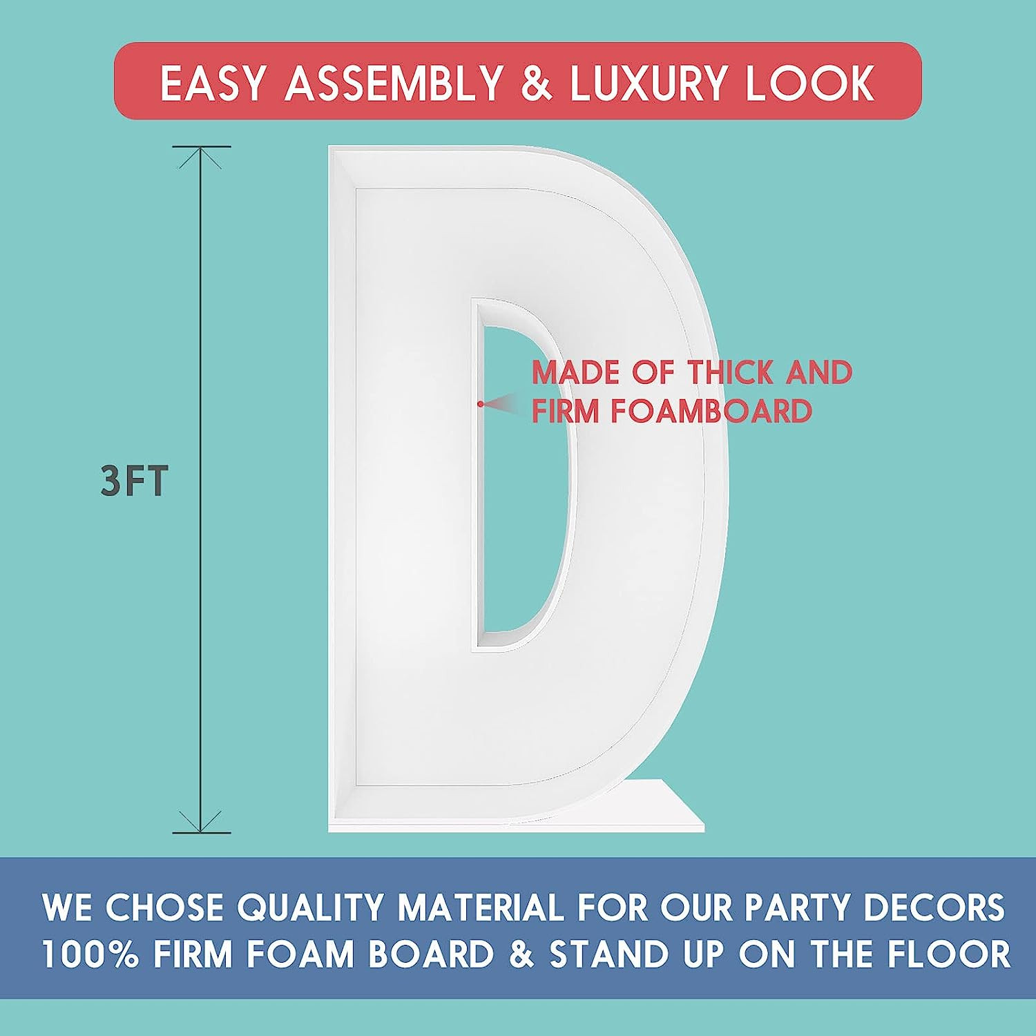 JW Passion - Premium Quality, Made With Passion 3FT Tall Mosaic Balloon Frame Letters Big Marquee Light Up Letters DIY Kit for Birthday Party Wedding Backdrop Decor Letter D Pre-Cut Foam Board