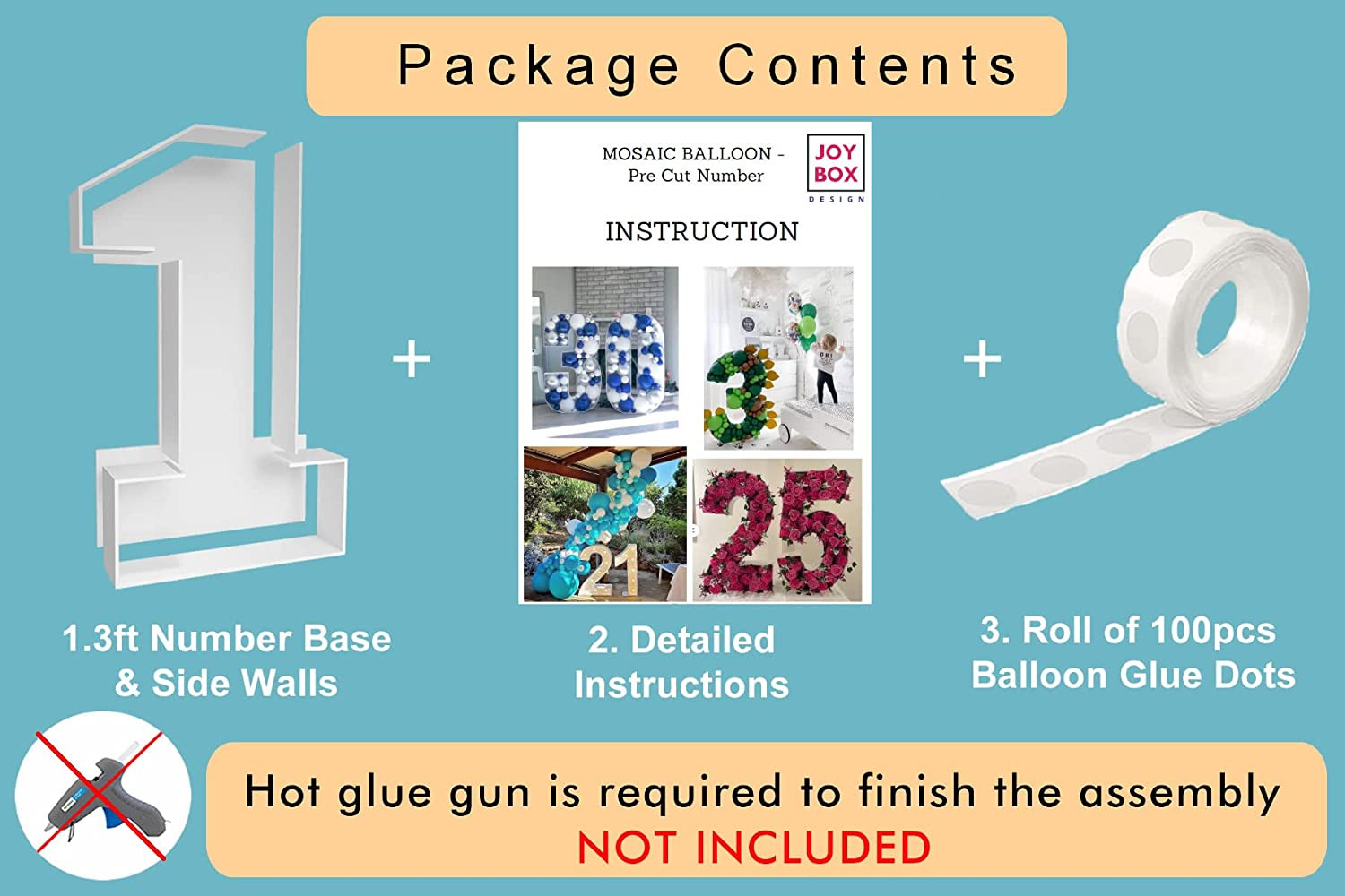 ✅【EASY TO SETUP RELIABLE DECOR】 Pre-Cut Kits are ready to be assembled. All you need is a glue gun to hold each side walls together. Made with FIRM and THICK foamboard, not dollar store foam board like other vendors. Use your hot glue gun and just follow the EASY INSTRUCTION (included) that come along with the item. It only takes less than 15 mins to build this giant, gorgeous number Mosaic balloon frame.