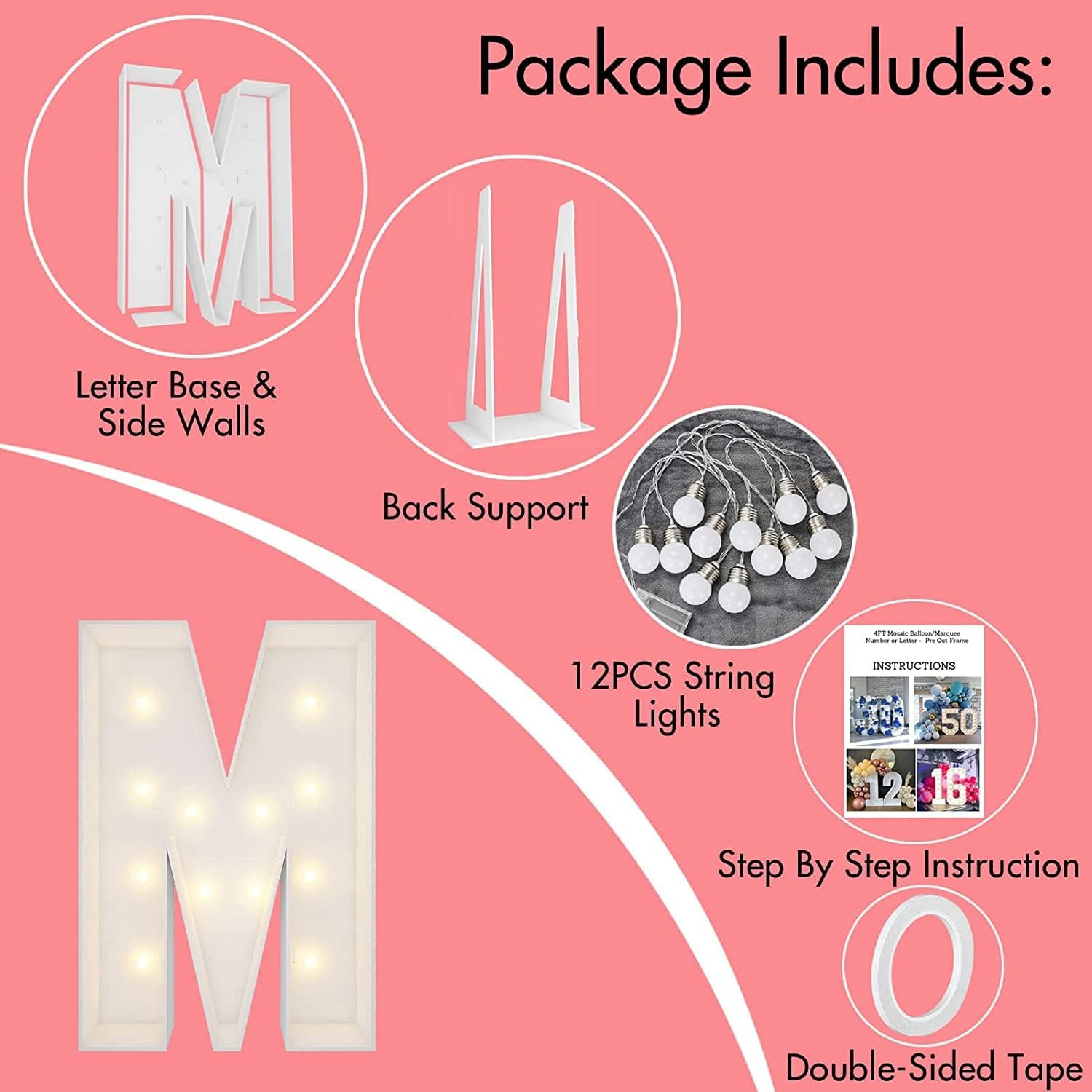 Marquee Light Up Letters, 4FT Marquee Letters M, Mosaic Letters for Balloons, Mosaic Balloon Frame, Giant Cardboard Letters for Birthday Engagement Wedding Party Decoration, Balloon Arch Kit