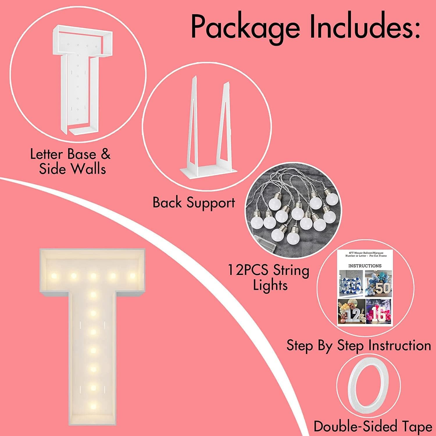 Marquee Light Up Letters, 4FT Marquee Letters T, Mosaic Letters for Balloons, Mosaic Balloon Frame, Giant Cardboard Letters for Birthday Engagement Wedding Party Decoration, Balloon Arch Kit Brand
