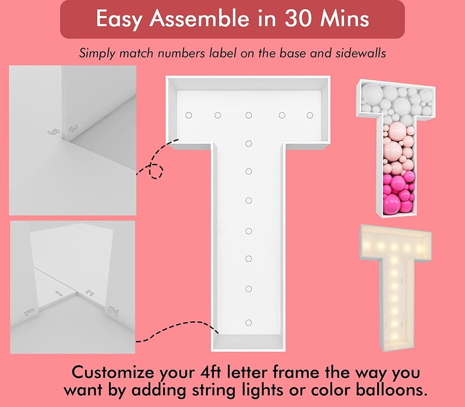 Our 4FT letters frame are pre-cut in perfect shape. We included match up number for each sidewall matching the letter base. Save your hassle from figure out yourself.