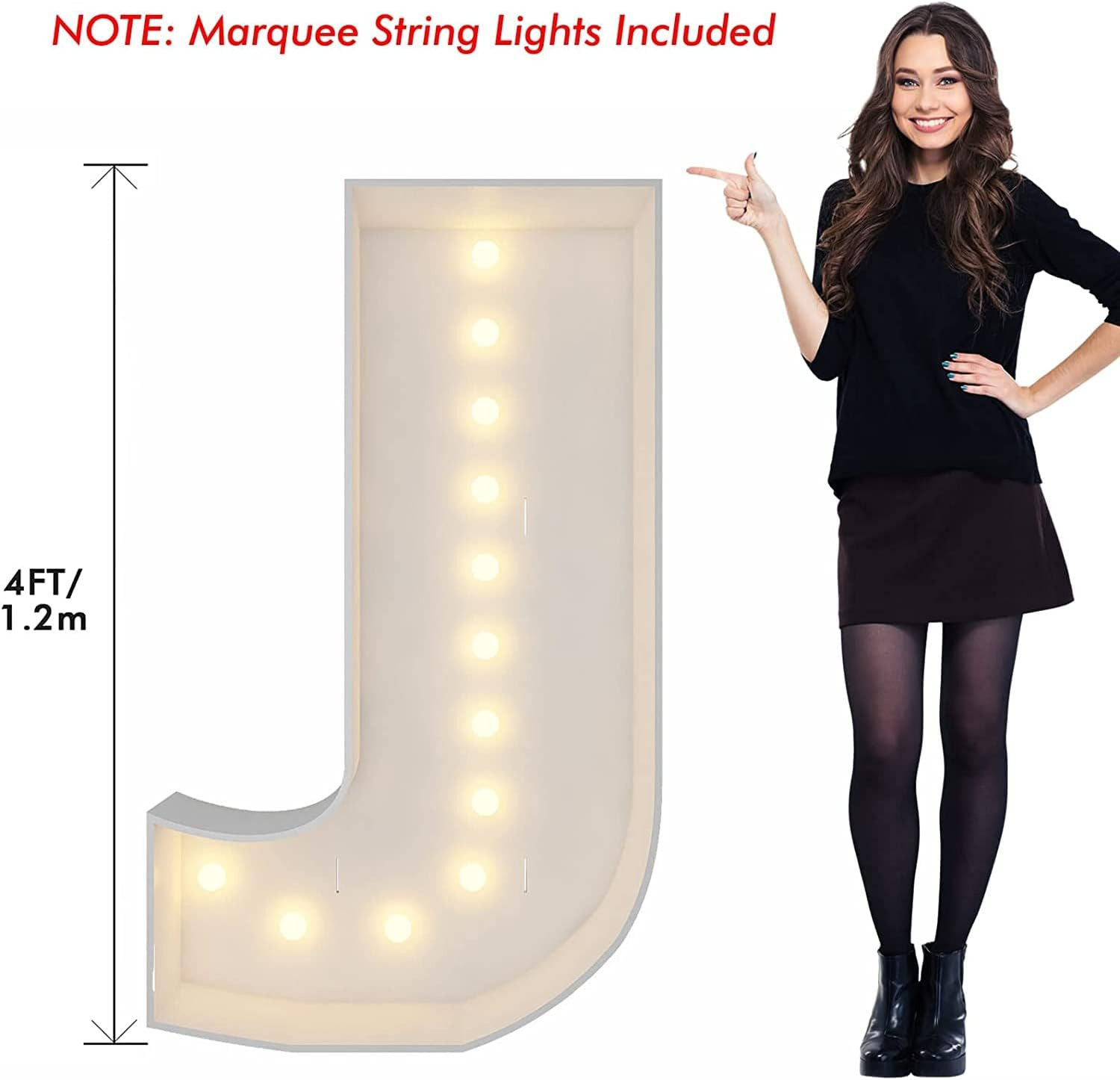 Marquee Light Up Letters, 4FT Marquee Letters J, Mosaic Letters for Balloons, Mosaic Balloon Frame, Giant Cardboard Letters for Birthday Engagement Wedding Party Decoration, Balloon Arch Kit