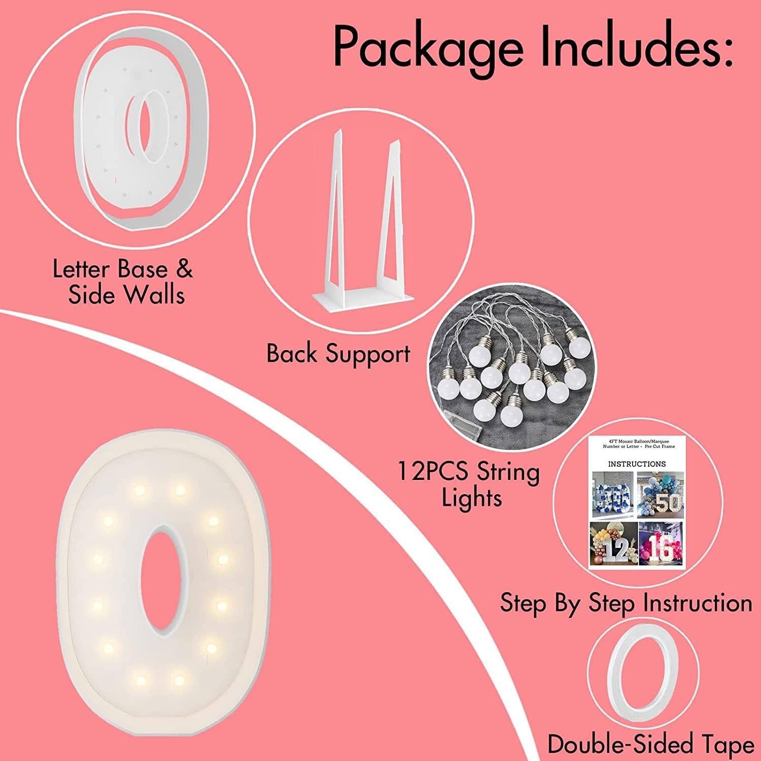 Marquee Light Up Letters, 4FT Marquee Letters O, Mosaic Letters for Balloons, Mosaic Balloon Frame, Giant Cardboard Letters for Birthday Engagement Wedding Party Decoration, Balloon Arch Kit