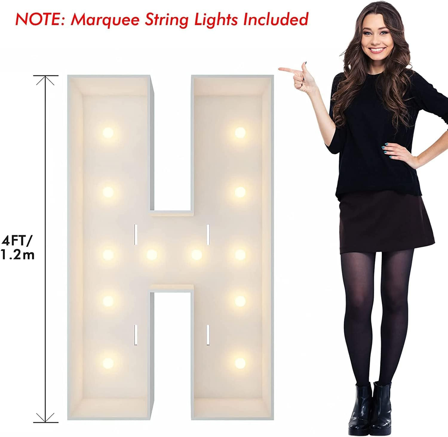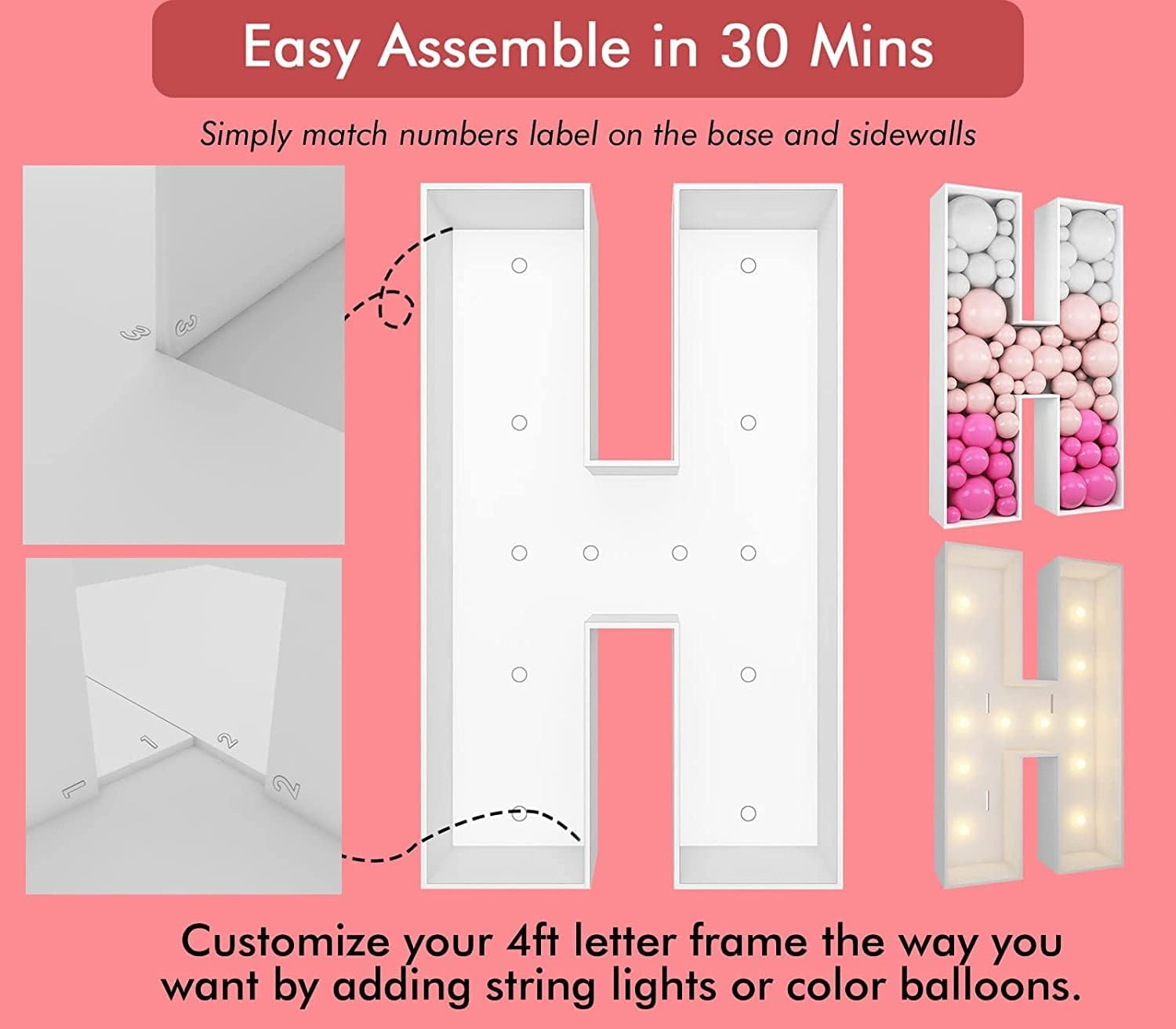 Marquee Light Up Letters, 4FT Marquee Letters H, Mosaic Letters for Balloons, Mosaic Balloon Frame, Giant Cardboard Letters for Birthday Engagement Wedding Party Decoration, Balloon Arch Kit