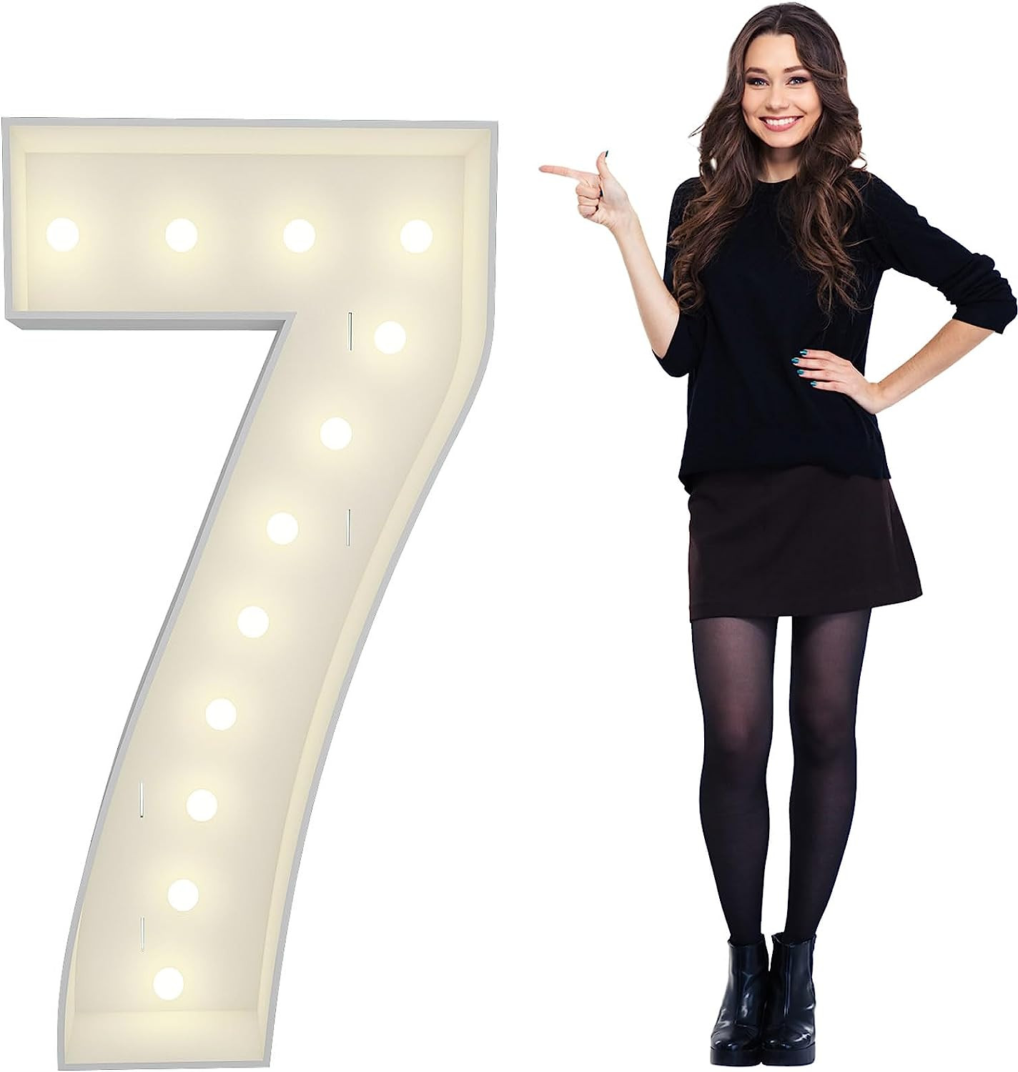 4FT Marquee Light Up Numbers Pre-Cut Frame Giant Marquee Numbers 7, Mosaic Numbers for Balloons, 20th 30th 40th 50th 60th Birthday Anniversary Decorations Party Decor