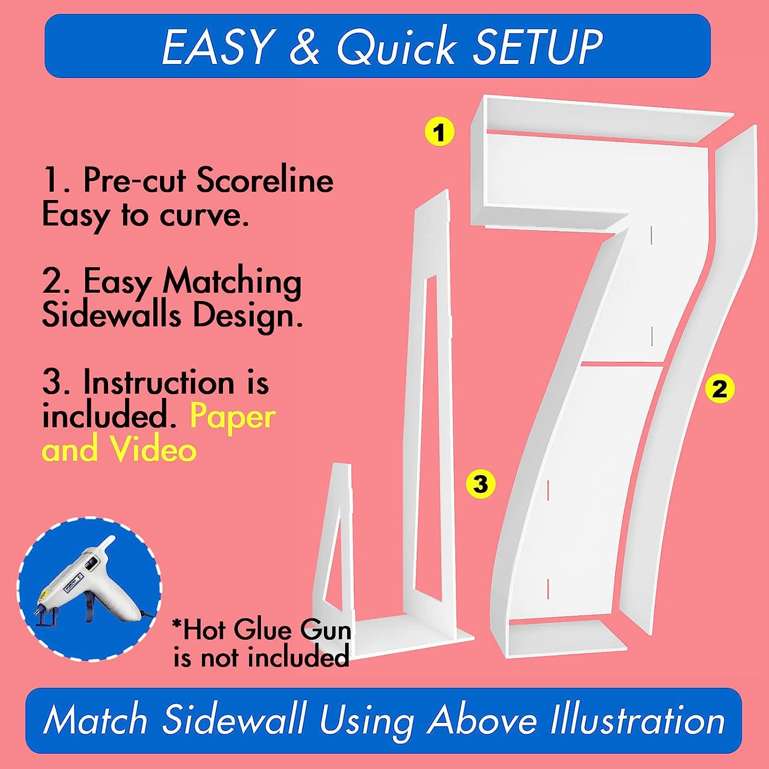 【LIGHT UP YOUR PARTY】4ft tall marquee light-up number pre-cut kit is your perfect birthday, graduation, or other events party decor which will make your celebration special. they will add a strong statement and a big hit to the party. All you need is a hot glue gun, follow our simple step-by-step instructions. You will have these awesome marquee numberss light up in less than 30 mins.