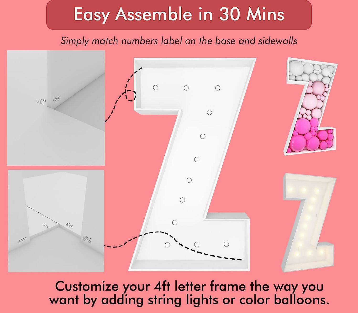 Marquee Light Up Letters, 4FT Marquee Letters Z, Mosaic Letters for Balloons, Mosaic Balloon Frame, Giant Cardboard Letters for Birthday Engagement Wedding Party Decoration, Balloon Arch Kit - 副本