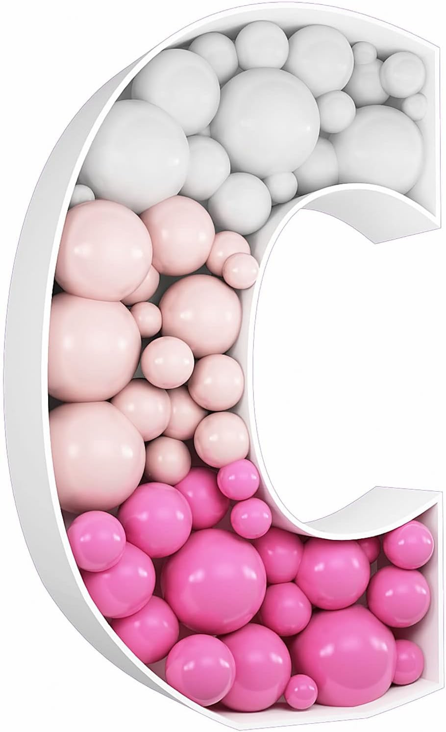 JW Passion - Premium Quality, Made With Passion 3FT Tall Mosaic Balloon Frame Letters Big Marquee Light Up Letters DIY Kit for Birthday Party Wedding Backdrop Decor Letter C Pre-Cut Foam Board - 副本