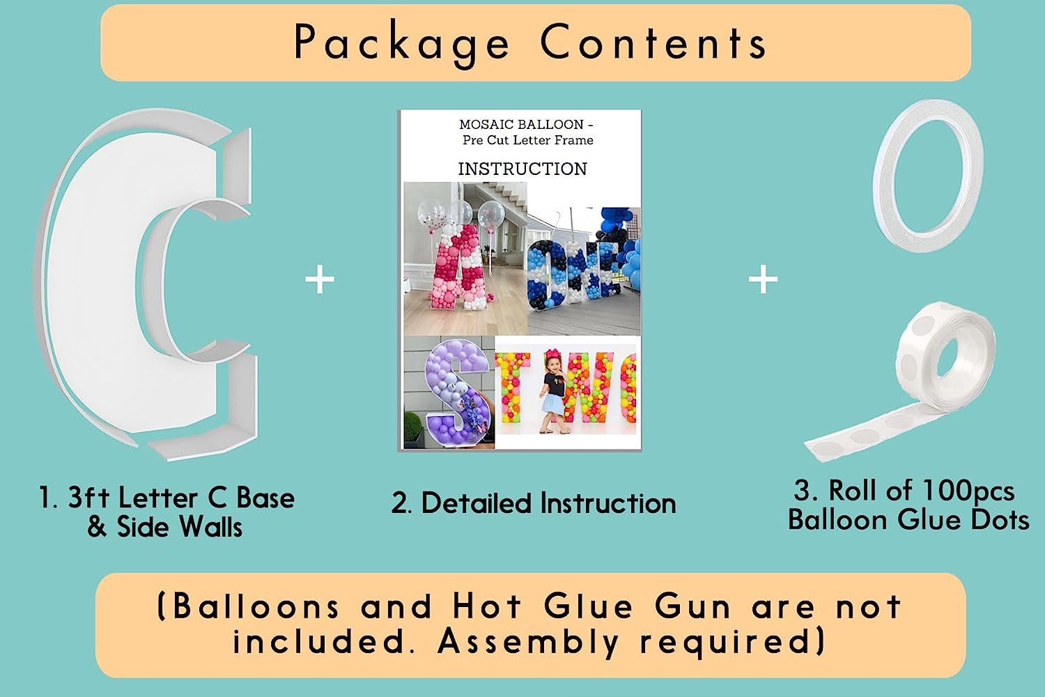 • Our balloon mosaic letter pre-kit comes with everything you need to build a 3D sculpture with a detailed instructions. Set up your giant 3ft tall balloon mosaic or marquee letters in just 15 minutes!